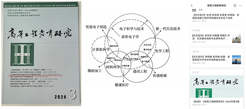 近日,我院朱先軍副教授、劉蕾蕾教授、郭艷東副教授和許吉副教授等人,在國內(nèi)工程教育研究權(quán)威期刊《高等工程教育研究》上發(fā)表題為《交叉融合性新專業(yè)柔性電子學(xué)的課程體系建設(shè)》的教學(xué)改革研究論文。論文闡述了柔性電子學(xué)專業(yè)多學(xué)科交叉融合性的特點(diǎn),著重介紹了我院在面向交叉融合的前沿學(xué)科需求,以學(xué)生為中心,以產(chǎn)業(yè)需求為導(dǎo)向、突出多學(xué)科交叉融合的特點(diǎn)、引入前沿技術(shù)進(jìn)行柔性電子人才培養(yǎng)的課程體系構(gòu)建和優(yōu)化的思路,重點(diǎn)介紹了專業(yè)核心課程的特色和實(shí)踐教學(xué)環(huán)節(jié)設(shè)置,詳細(xì)介紹了傳統(tǒng)課程融合交叉學(xué)科特色的教學(xué)內(nèi)容改革。柔性電子學(xué)是面向國家重大戰(zhàn)略需求的跨學(xué)科交叉融合領(lǐng)域設(shè)立的新專業(yè),我校于2021年向教育部申報(bào)設(shè)立柔性電子學(xué)專業(yè)并成功獲批,于2022年9月招收第一屆本科生。我院柔性電子學(xué)專業(yè)師資隊(duì)伍建設(shè)、課程體系建設(shè)和學(xué)科發(fā)展等如火如荼的開展,并取得了良好實(shí)效。柔性電子學(xué)專業(yè)課程體系建設(shè)相關(guān)研究受到了《高等工程教育研究》期刊編委的青睞,刊發(fā)在2024年第3期“新工科研究與實(shí)踐”專欄,并作為選文在其公眾號上推廣,受到了國內(nèi)高等教育界學(xué)者們關(guān)注。該教學(xué)研究成果得到南京郵電大學(xué)本科教改項(xiàng)目和江蘇省高等教育教學(xué)改革研究項(xiàng)目